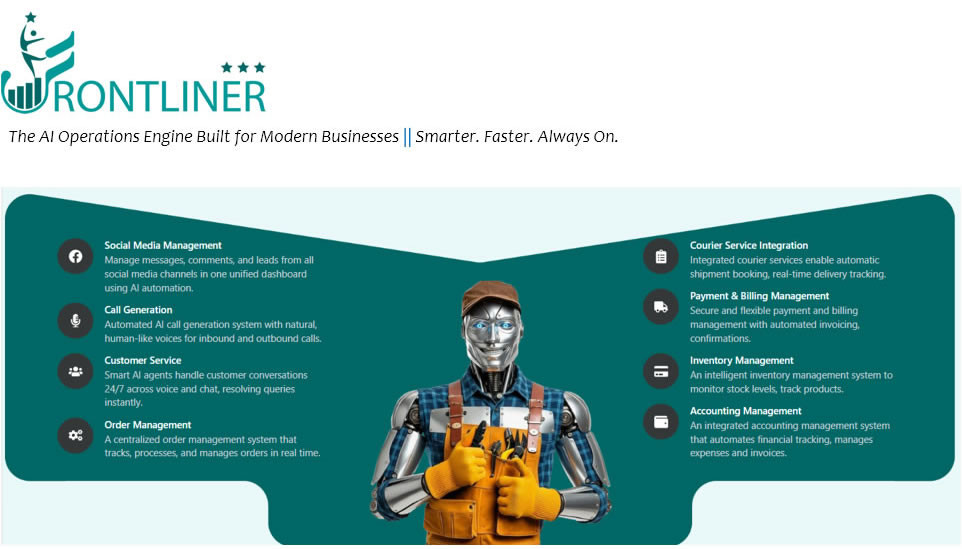 #frontliner#AI#artificialintelligence#Automation#BusinessAutomation#TBV#CDQ#CloudFectiv#HSBLCO#saasapplication#digitaltransformation#eCommerce#FCommerce#StartupGrowth#SaaS#CustomerExperience#OperationsManagement#BusinessEfficiency#TechInnovation#FutureOfWork#DigitalBusiness#ScaleWithAI#SmartOperations#AIforBusiness#Entrepreneurship#SmallBusinessTools#LogisticsTech#CustomerServiceAutomation#AIChatbots#TelesalesAutomation #OrderManagement#CourierAutomation#SME#SMB